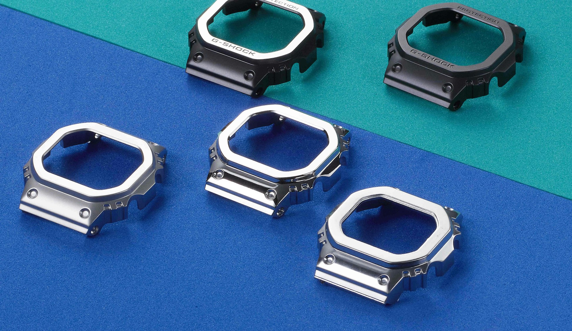 積極的な新素材の採用はもとより、IPやDLCを用いたカラー表現、さらにはエイジド加工やレーザーによってユニークなパターンを施すなど、近年カシオが推進しているCMF(カラー・マテリアル・フィニッシュ)デザインを象徴するコレクションとなった。フォルムこそ初代の角型5000系を踏襲しているものの、その表情はベーシックな樹脂製モデルとは異なる魅力を放ち、古くからのG-SHOCKフリークはもちろん、新たなファンの獲得にも成功した。