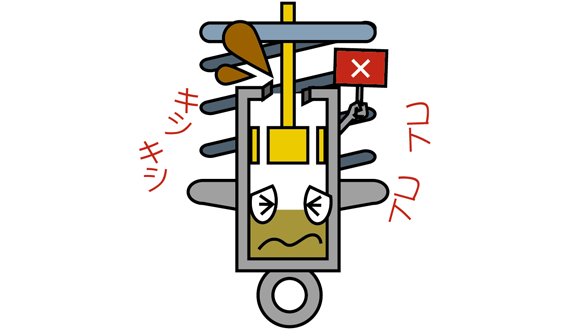 オイル抜けによる異音が発生し、乗り心地が悪くなります。
